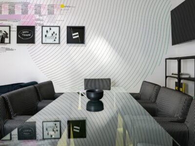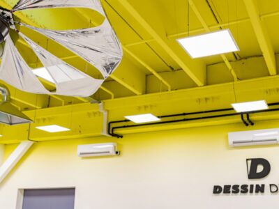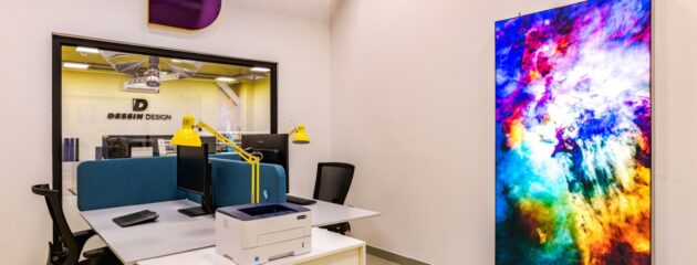 A 25 éves Dessin Design Kft. nem csak tervezi, hanem gyártja és ki is helyezi azokat a két- és háromdimenziós látványelemeket, amelyek meghatározzák a kortárs művészeti múzeumtól a blue chip multicégekig terjedő szcénában működő megrendelőinek mindenkori vizuális arculatát. A cég legújabb iroda-műhely kombója is a kreatív ötlet megszületésétől a teljes gyakorlati megvalósításig terjedő ívben fogja össze a vizuális tervezés és termelés területeit. Az a negyedszázada csiszolt törekvés, hogy a cég munkatársai a grafikustól, a belsőépítészeti tervezőtől a nagyformátumú, state-of-the-art digitális nyomda- és vágógépek irányítóin át a bel- és kültéri dekoratőr szakértőkig a cégvezetővel együtt, egyetlen közösségi térben működhessenek, maradéktalanul az Illa Irodaházban kialakított hibrid iroda-műhely térben valósulhatott meg. Az áttetsző térszervezés a cég minden munkatársa számára láthatóvá teszi a többiek tevékenységét, ami organikus módon, kényszer nélkül növeli minden érintett termelékenységét és (ön-)ellenőrizhetőségét. A cég küldetése és víziója áthatja az egész teret.