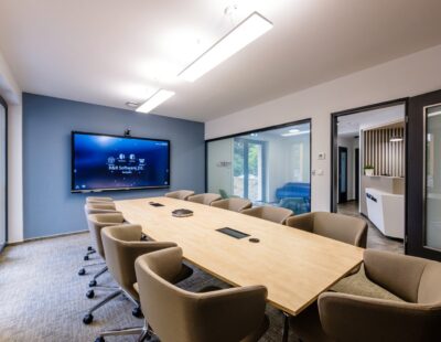 Az irodában a tárgyalók térkapcsolatainak összenyitásával, valamint az ezekhez kapcsolódó terasz és kert kialakításának köszönhetően nagyobb rendezvények is lebonyolíthatók. Nyitott tetőteraszunk alkalmas közös események, fogadások megrendezésére, a hétköznapok során pedig – kényelmes kerti bútorokkal berendezve – tökéletes helyszínt ad a munka melletti feltöltődésre, rövid beszélgetésekre, pihenésre és akár tárgyalások megtartására is.