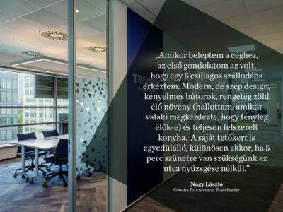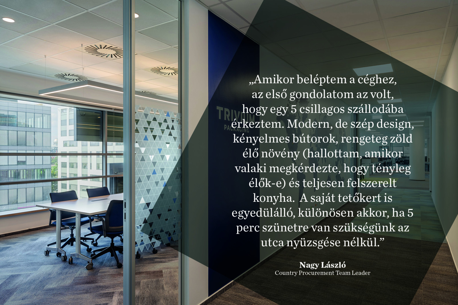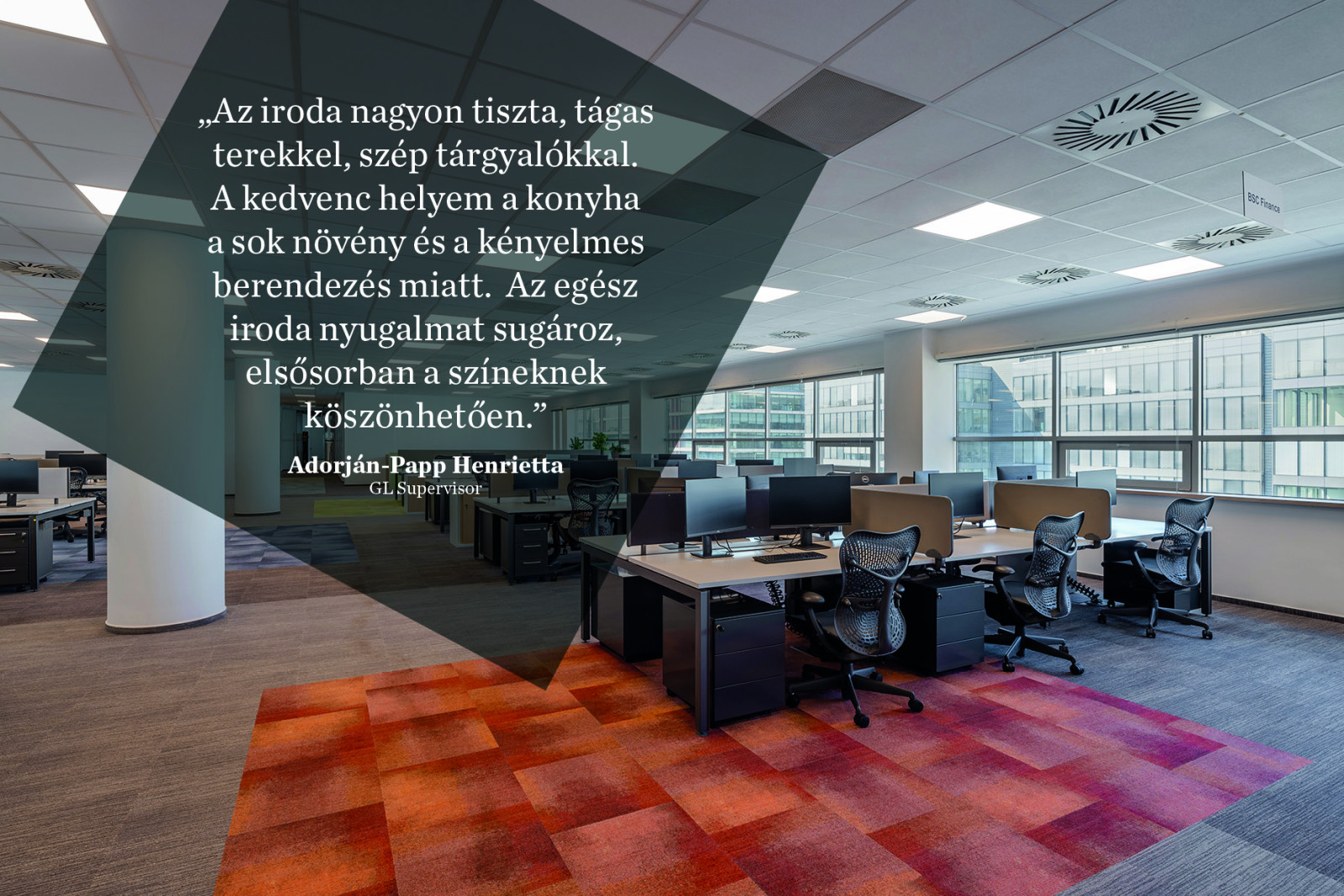 Amikor a budapesti irodájukat tervezték, a céluk az volt, hogy világos, zöld (környezetbarát) és élettel teli nyitott tereket alakítsanak ki, amelyek ugyanakkor korszerűek és technikailag jól felszereltek.