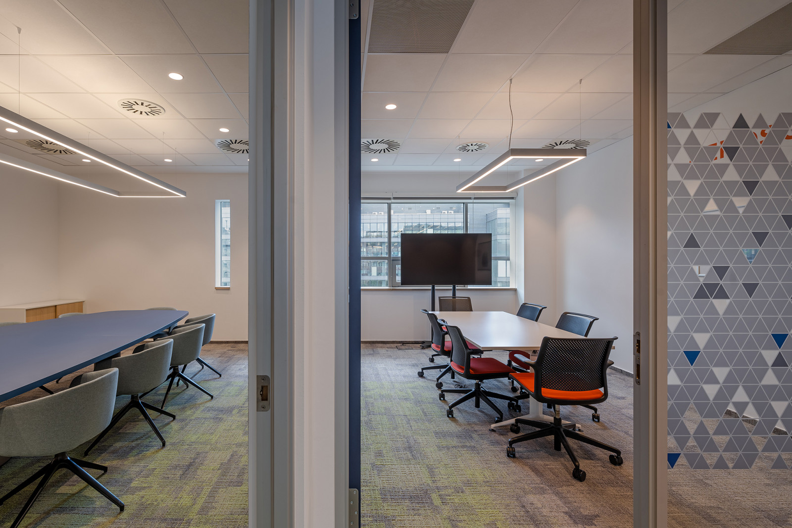 A heti 1-2 napos irodai munkavégzés mellett projektmeetingekhez, workshopokhoz, és tréningekhez használják az irodát. 13 db különböző befogadóképességű tárgyalójuk van. A kisebbeket 1-on-1 virtuális vagy elő meetingekre használják, míg a nagyobbakban prezentációkat és sokrésztvevős megbeszéléseket tartanak. Utóbbiak technikai felszereltsége azt is lehetővé teszi, hogy a kollégák online is be tudjanak kapcsolódni az irodában tartózkodók párbeszédébe.